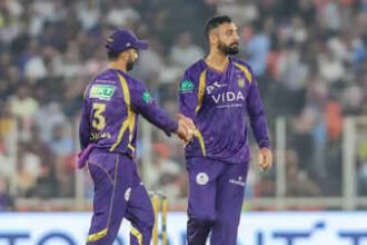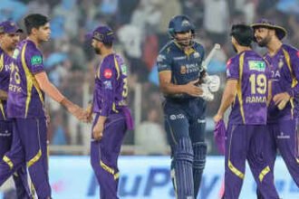 KKR and GT players after the match in Ahmedabad. (Pic credit: IPL)…