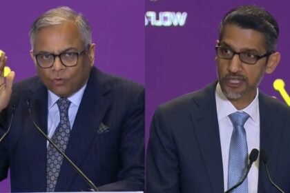 Tata Sons Chairman N Chandrasekaran, Google CEO Sundar Pichai at AI Summit in New Delhi India’s AI ambitions took centre…