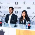 Gukesh Dommaraju, Arjun Erigaisi, Divya Deshmukh, and Harika Dronavalli (from left to right) (Photo by…