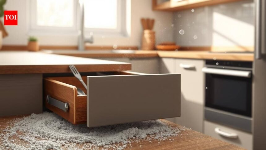 A common kitchen drawer problem is often caused by a thin layer of dust. This dust, a mix of skin cells and cooking oils, sticks to drawer rails due to electrostatic forces. It increases friction, leading to wear and tear.