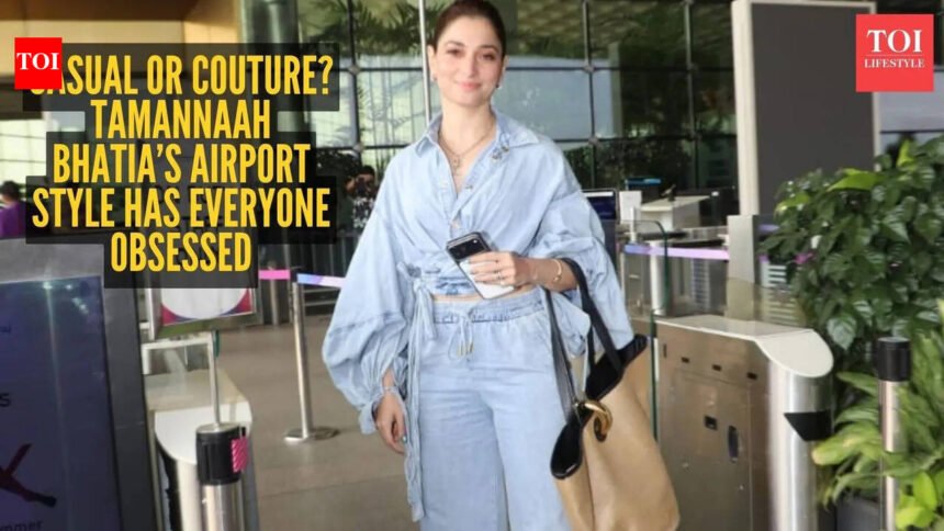 When it comes to airport fashion, some celebs play it safe… and then there’s Tamannaah Bhatia, who treats every airport like her own personal runway. Her latest travel look is proof that she might just be one of the most stylish celebrities – on screen and off it.Spotted flying out of the city, Tamannaah kept things cool, clean, and seriously chic. She picked a denim wrap top and matching pants set from Zimmermann, and somehow made denim look anything but basic. The wrap-style top added structure, while the relaxed pants kept it easy and comfortable. It’s that perfect mix of effort and ease that not everyone can pull off.But what really elevated the look? The accessories.She paired the outfit with the iconic Jacquemus La Bambola tote – a piece that instantly grabs attention. Priced at around ₹1.4 lakh, the bag is known for its soft, sculpted shape and minimal aesthetic, and it fit right into Tamannaah’s vibe. It didn’t feel flashy or forced – just quietly luxurious.To finish things off, she went with sleek silver pumps. No over-accessorising, no heavy styling – just clean, thoughtful choices that worked together perfectly.And that’s exactly why this look stands out. Airport fashion can easily become repetitive – oversized hoodies, basic co-ords, sunglasses, done. But Tamannaah manages to keep it fresh every single time. She doesn’t try too hard, and maybe that’s the secret. It feels natural. Effortless. Like she actually enjoys dressing up, not just doing it for the cameras.There’s also something very “real” about her style. Even when she’s wearing high-end brands, it doesn’t feel out of reach. The silhouettes are simple, the styling is wearable, and the overall vibe is relatable – just elevated.That’s what makes her different.While many stars rely on dramatic looks or trends, Tamannaah sticks to clean fashion with a twist. And more often than not, it works. Whether she’s promoting a film or just catching a flight, she brings the same level of style.